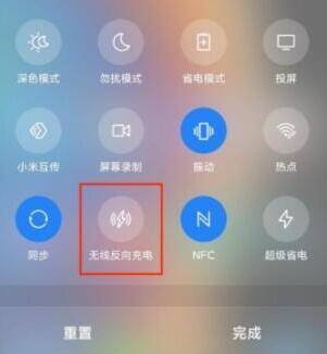 4、点击无线反向充电按钮,当按键变成蓝色表示开启。
