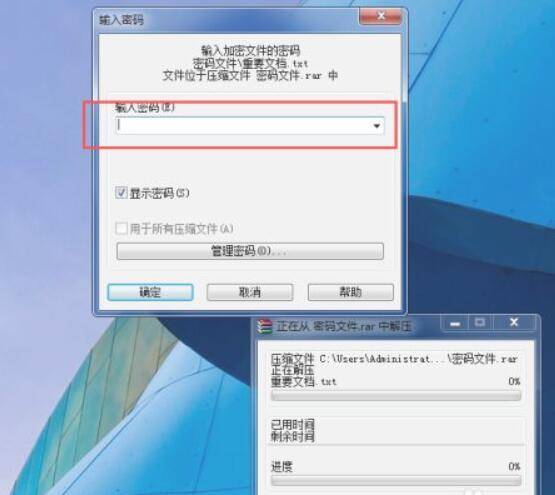 5、确认后,rar文件将会弹出提示框,要求输入密码。输入后,就可以正常打开了,之前保存的密码文件就又出现了。