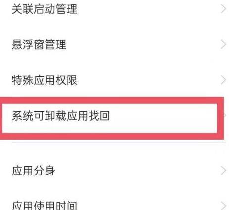 3、在应用管理页面,找到“系统可卸载应用找回”,点击打开。