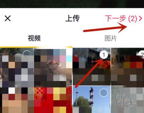 在上传界面中可以看到自己手机里的视频,点击多段视频选项。
