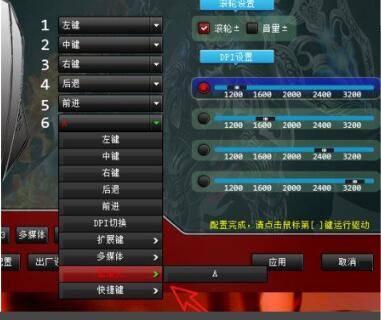 点击下面的应用前,需要按住这个鼠标上的那个宏设定键,然后进行设置,这样才算完成。