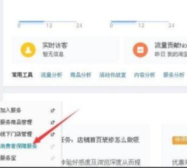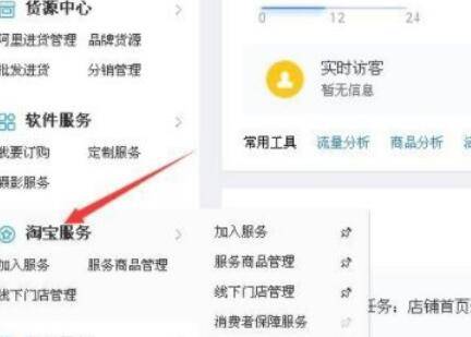 3、登录之后,在左边找到淘宝服务,点击淘宝服务的扩展符号,会出现一个下拉窗口。