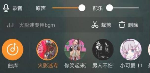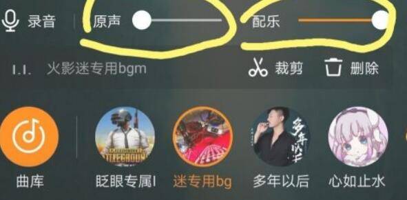 如果想只使用作品原声,就把配乐调到最低,把原声调到最高即可。如果想使用配乐而不使用原声,就把原声调到最低,把配乐调到最高。