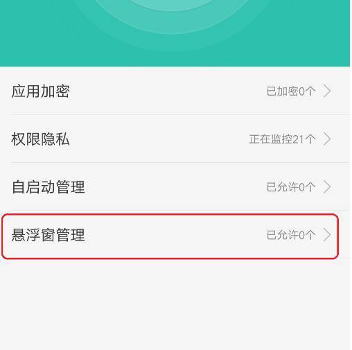 3、在权限隐私界面打开“悬浮窗管理”进入。