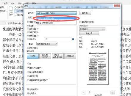 在打印机名称下拉栏中,选择Foxit Reader PDF Printer。