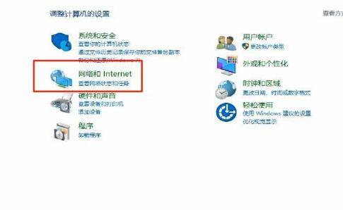 3、选择网络和Internet,点击Internet选项。