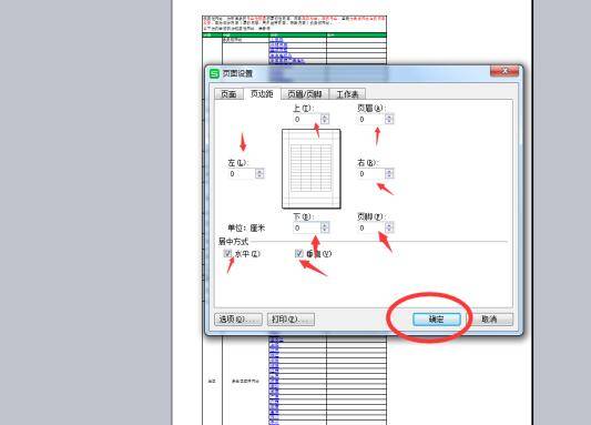 3、点击页边距,把所有数值设置为0,勾选水平、垂直,点击确定。