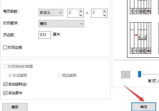 5、每页版数设置为2X2(即每张纸打印4页)。