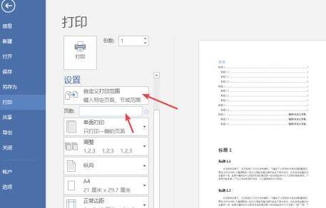 6、选择“自定义打印范围”,便会显示一个页数文本框,输入想要打印的页码即可。