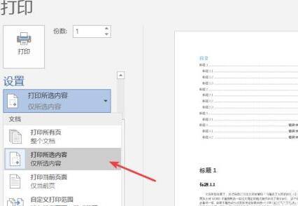 4、点击选择“打印所选内容”,便就只会打印选中的文字内容。