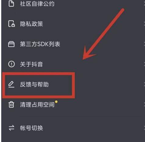 找到反馈与帮助选项并点击进入。