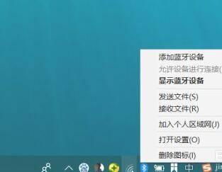 打开后,在电脑的任务栏可以看到蓝牙的图标,右键点击即可使用蓝牙的相关功能。
