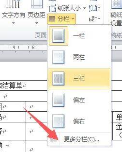 在分栏中选择“更多分栏“。