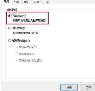 “常规”选项卡,点击选择“正常启动”点击“确定”按钮。