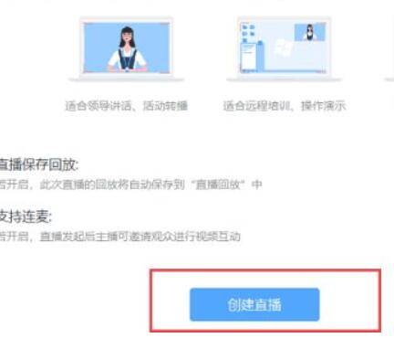 开启支持连麦之后,点击创建直播。