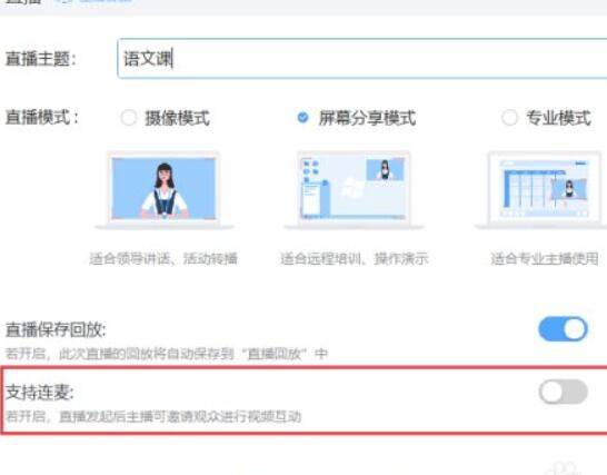 进去创建直播界面,输入直播主题,选择模式,开启支持连麦。