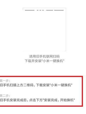 5、用华为手机扫描二维码,然后安装小米一键换机,点击下方的安装完成,开始换机即可。