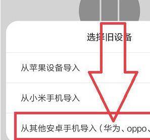 4、在弹出的选项里选择从其他安卓手机导入。