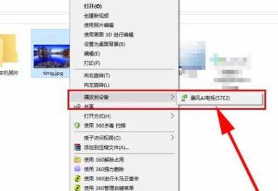在电脑上打开图片,然后右键选择在电脑上打开,这样电脑上的图片就会被投屏到电视上。
