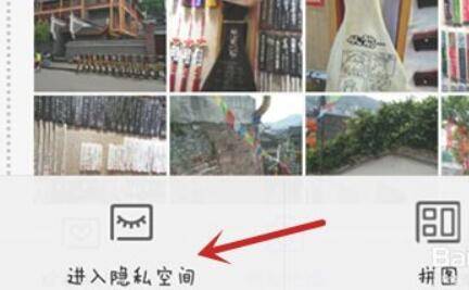 2、设置好图形密码后,选择好要加密的手机照片或者图片后,点击右下角的“更多”(…),出现加密,点击加密输入图形密码进入隐私空间,自动加密。