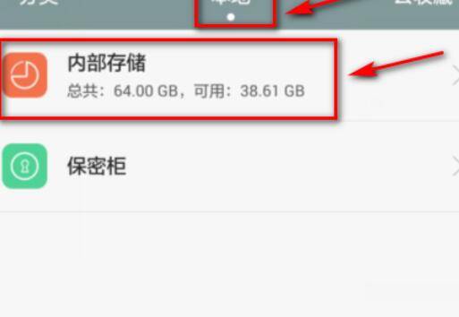 5、选择“本地”,找到“内部存储”选项,点击打开。