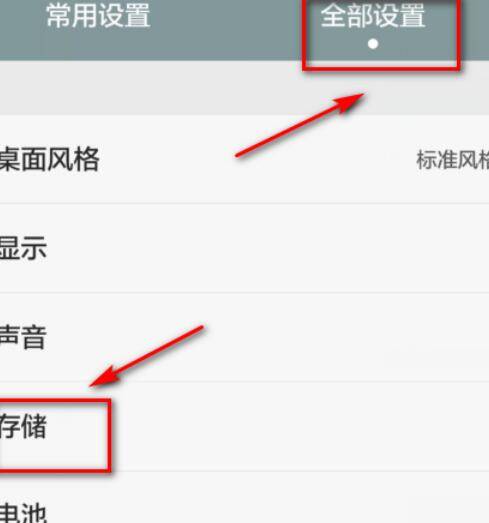 2、选择上方右边的“全部设置”,找到并点击选项“存储”。