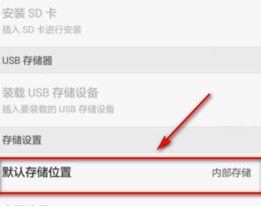 3、在页面里找到“默认存储位置”一栏,可看到存储位置为“内部存储”。