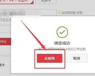 6、绑定成功后,点击“去使用”即可使用京东卡。