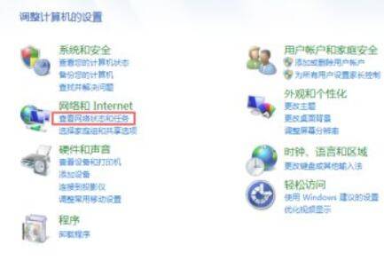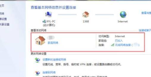 点击查看网络状态和任务选项,进入网络和共享中心界面,在该界面可以找到活动网络。