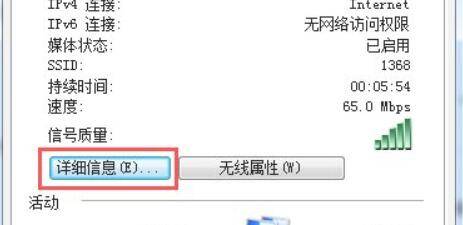 点击无线网络连接进入无线网络连接状态,在设置固定IP地址前可以先通过详细信息功能选项里查看已获取的IP地址号段。