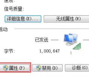查看完毕后返回到无线网络连接状态对话窗口,找到属性功能选项。