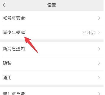 2、在设置界面,点击青少年模式的选项。