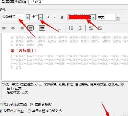 点击“目录2”“目录3”等,对其余级别的标题同样设置各自的文字格式。