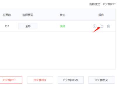 4、转换成功后,点击文件列表右侧的“文件夹”图标,即可直接找到转换好的PPT文件。