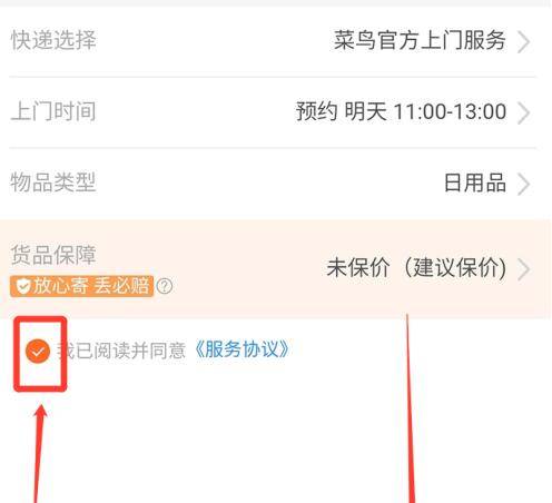 4、选择快递上门的时间,已经物品类型后勾选同意条款,点击“立即下单”。