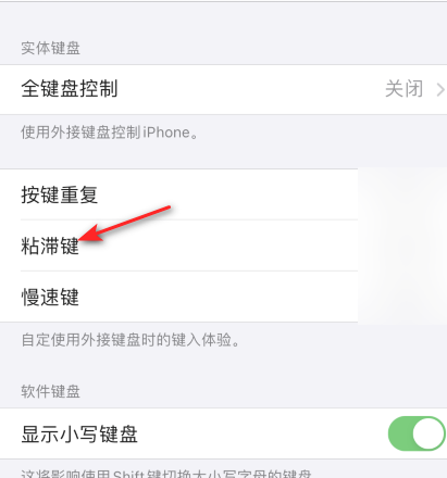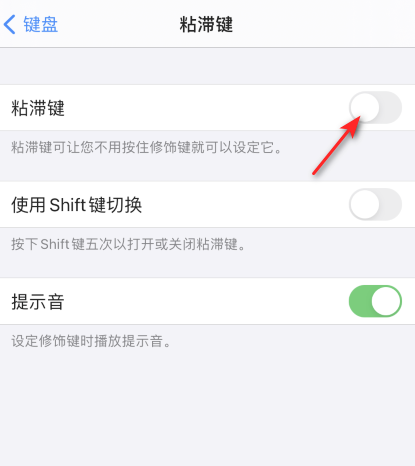 之后将粘滞键的滑动按钮向左滑动关闭。