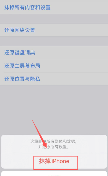 二次确认界面,点击抹除iPhone,重新进入系统即可删除其它。
