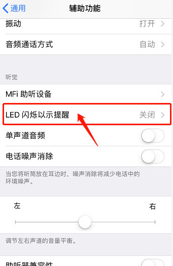 在辅助功能里面滑动屏幕找到“LED闪光以示提醒”进入,把后面的按钮打开关闭看手电筒是否能正常使用;