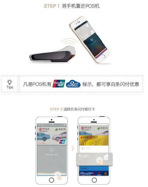 京东白条只支持线上支付。若开通了白条闪付(消费白条额度)且收银台有银联云闪付、Apple Pay、HUAWEI Pay、Mi Pay标识中的任意一个,即可在支付时使用白条闪付进行消费。