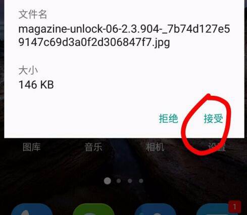 选择想要分享的文件,分享方式选择蓝牙,点击接受文件之后文件开始传输。