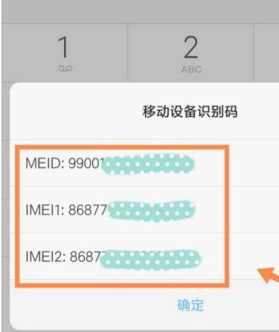 手机会直接跳出一个窗口,里面显示的IMEI后面的一串数字就是;