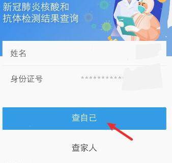 5、在核酸检测查询页面,点击查自己,就可以查询自己的酸检测结果。