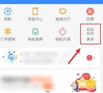 2、在支付宝首页,在应用中,点击更多。