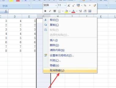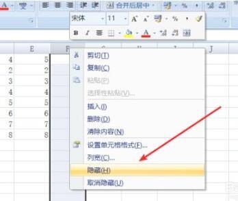 如果要取消隐藏也是同样选中末尾的两列,注意一定要选择最后两列。