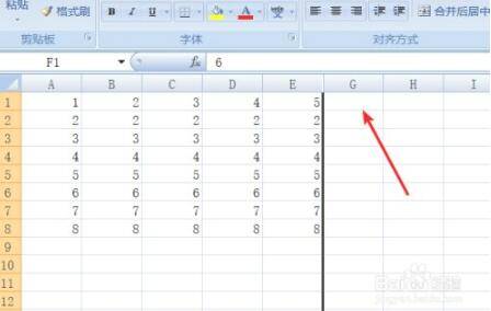 第6列的内容已经消失,隐藏已经起了作用。
