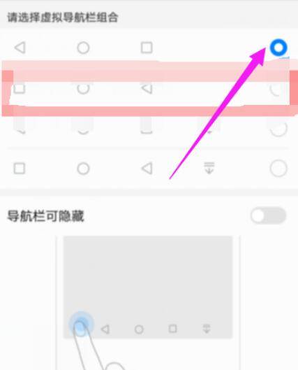 5、选择一种导航键组合方式,选择完成后,下方就会出现返回键。
