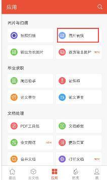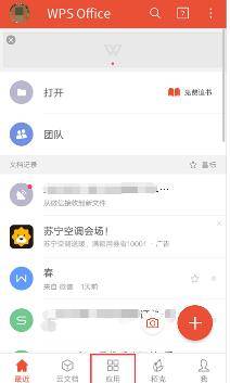 在手机上下载安装WPS Office APP,然后打开它进入主界面,进入主界面后点击下方的“应用”;