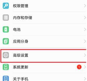 2、在设置的页面里找到高级设置选项。