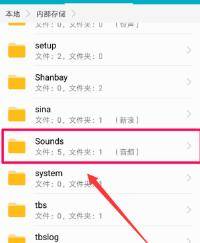 4、在内部存储中存放着手机的所有文件夹,在文件夹中“Sounds”文件夹就是手机录音文件存放的文件夹,点击“Sounds”进入。