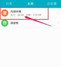 3、在“本地”存储界面里面,点击“内部存储”进入内部存储界面。